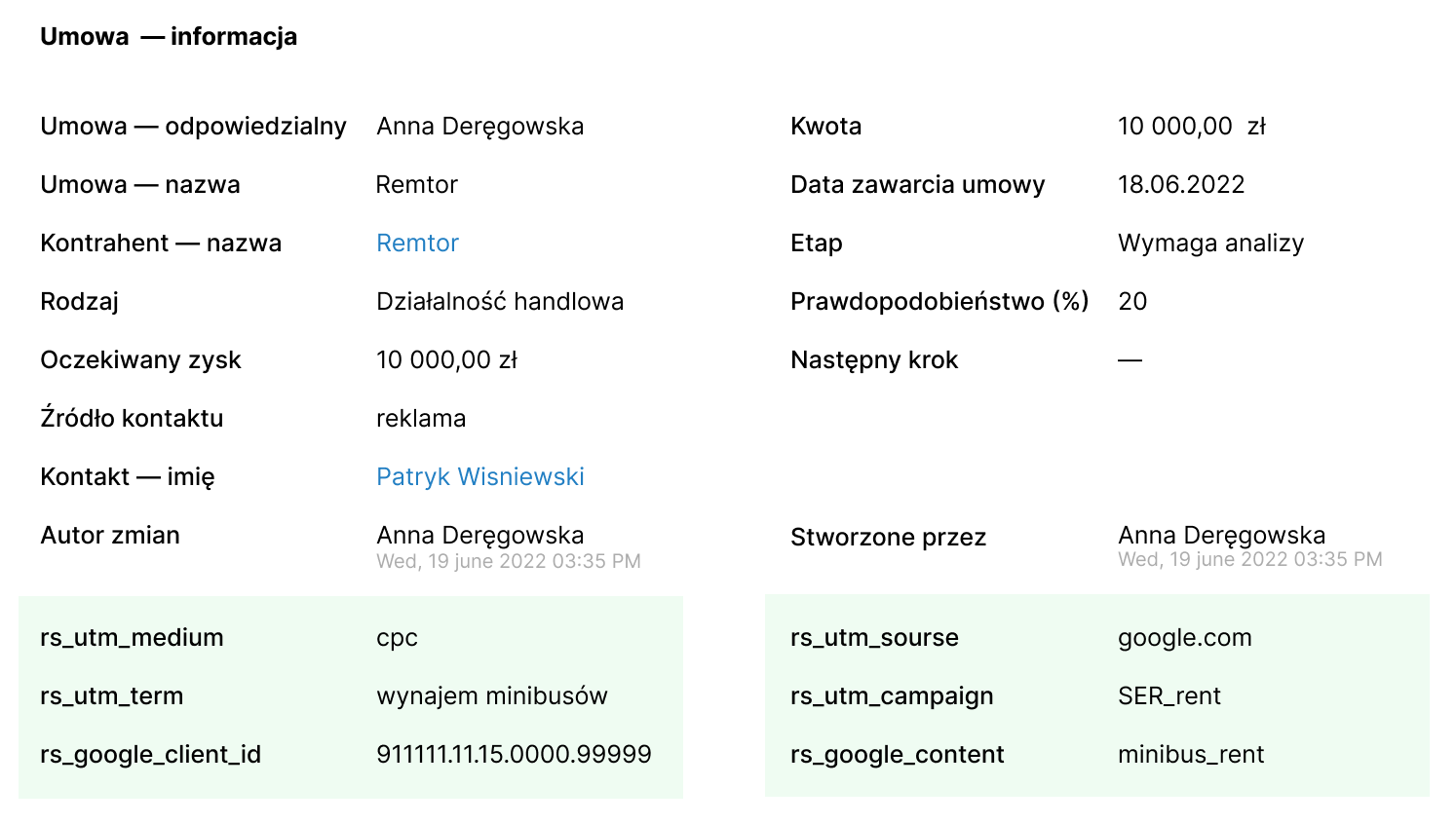 | Która kampania / które ogłoszenie doprowadziły do połączenia | ❌ Nie | ✅ Tak |
