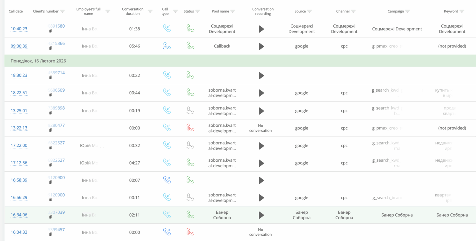Po podłączeniu call trackingu Ringostat agencja KROT Agency otrzymała szczegółowe dane o każdym kontakcie: źródło, kanał, kampanię i słowo kluczowe. Analiza połączeń pokazała, które zapytania przyciągają niewłaściwy ruch, i pozwoliła dodać je do wykluczających słów kluczowych. Dodatkowo zespół zobaczył, jakich informacji brakuje klientom na stronie, a po dopracowaniu contentu zainteresowanie usługami wzrosło.